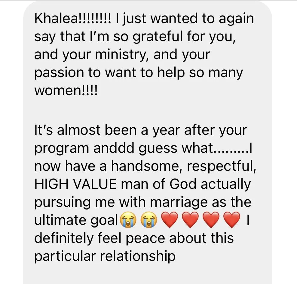Once you make this shift, you’ll stop attracting men who waste your time, and instead, you’ll start drawing in high-quality, godly men who are serious about marriage.